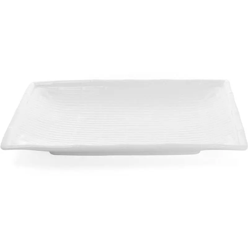 Набір 2 прямокутні тарілки "White City" - білосніжна колекція столового сервірувального посуду з фарфору. Плоска обідня тарілка прямокутної форми. Оригінальний об'ємний декор "Бамбук". Розмір 36х21см. Може використовуватися для подавання суші, як підставна або велика обідня тарілка. У комплекті 2 тарілки. Для домашнього та професійного інтенсивного використання. Тарілки "White City" можна мити в посудомийній машині та використовувати для підігрівання в мікрохвильовій печі.
