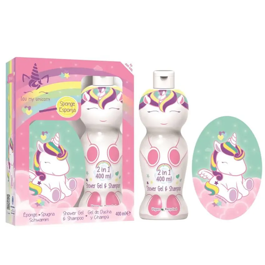 Набір Air-Val Єдиноріг – магічний подарунок для вашої дитини, що включає шампунь-гель 2в1 і м'яку мочалку.