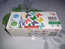 Набір акрилових фарб для декору матовий пастельні кольори 6×20 мл Rosa TALENT - упаковка акуратна з ламінованого паперу, дозволяє зручно зберігати і використовувати фарби. Ємності з фарбою по 20 мл пластикові з контрольною стрічкою, пастельні кольори дещо відрізняються від базових - тому їх і купив. Фарба добре лягає на підготовлену поверхню - метал, пластик, дерево, папір, досить швидко сохне. Можна трохи розбавити з водою. Якістю фарби задоволений, при тому, що вона виробляється у нас - в Україні.