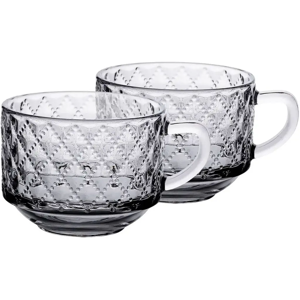 До кінця акції 7 днівЧашки об'ємом 450 мл виготовлені з кришталевого скла, що забезпечує їхню прозорість і міцність. Висота кожної чашки становить 7.5 см, верхній діаметр - 10.5 см, а нижній - 6 см. Завдяки місткому об'єму вони підходять для подачі гарячих і холодних напоїв, як-от чай, кава, какао або лимонад. Форма чашок забезпечує зручність у використанні, а кришталеве скло надає їм елегантного вигляду. Вироби можуть використовуватися як у повсякденному житті, так і для сервірування святкового столу. Міцний матеріал стійкий до механічних впливів у межах побутового використання. Чашки легко очищаються, не вбирають запахи і зберігають первісний вигляд протягом тривалого часу. Підходять для миття вручну.