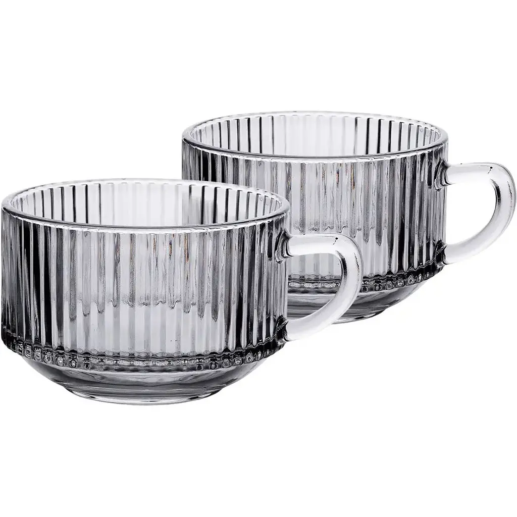 До кінця акції 7 днівСкляні чашки об'ємом 450 мл мають ребристу поверхню, що надає їм текстурованого вигляду та зручності у використанні. Висота кожної чашки становить 7.5 см, верхній діаметр - 10.5 см, а нижній - 6 см. Вони підходять для подачі гарячих і холодних напоїв, таких як чай, кава, какао або лимонад. Завдяки рельєфній структурі чашки зручно тримати в руках, а прозоре скло дає змогу оцінити колір напою. Вироби поєднують у собі практичність і декоративний вигляд, що робить їх придатними для щоденного використання або сервірування святкового столу. Матеріал легко очищається, не вбирає запахи та зберігає первісний вигляд протягом тривалого часу. Чашки можна мити вручну або в посудомийній машині.