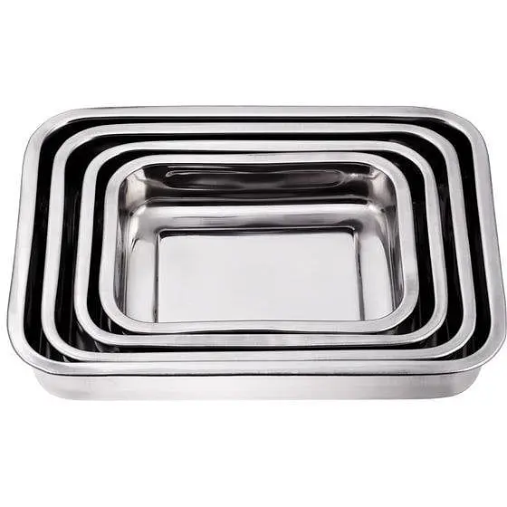 Набір прямокутних дек-гастроємкостей 4 штуки. Виготовлений із харчової неіржавкої сталі з дзеркальним поліруванням. 4 розміри прямокутних дек:♦ 42х32 см, глибина 6 см;♦ 37х28 см, глибина 6 см;♦ 32х24 см, глибина 5 см;♦ 28х20 см глибина 5 см.Можно мити в посудомийній машині та безпечно зберігати продукти в морозильній камері.