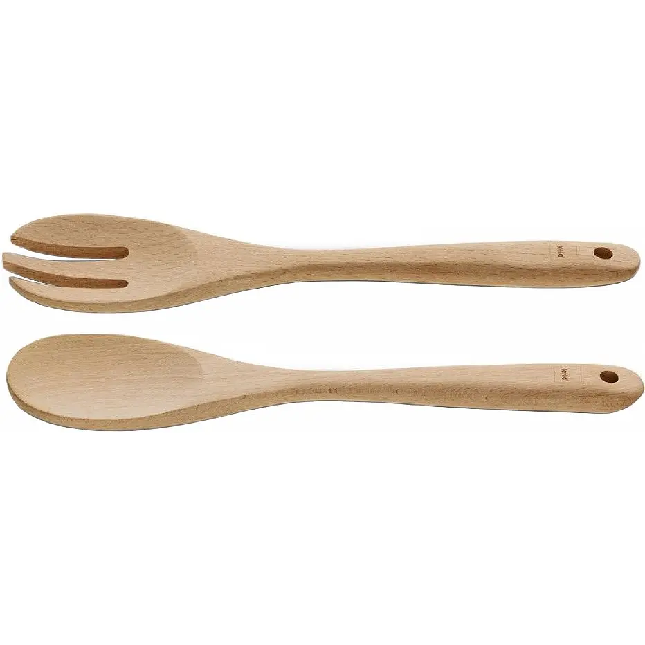 Набір дерев'яних ложок для салату Kela Calla не нагрівається, не розтріскується, повністю екологічний. У наборі дві ложки: суцільна та з поздовжніми прорізами.