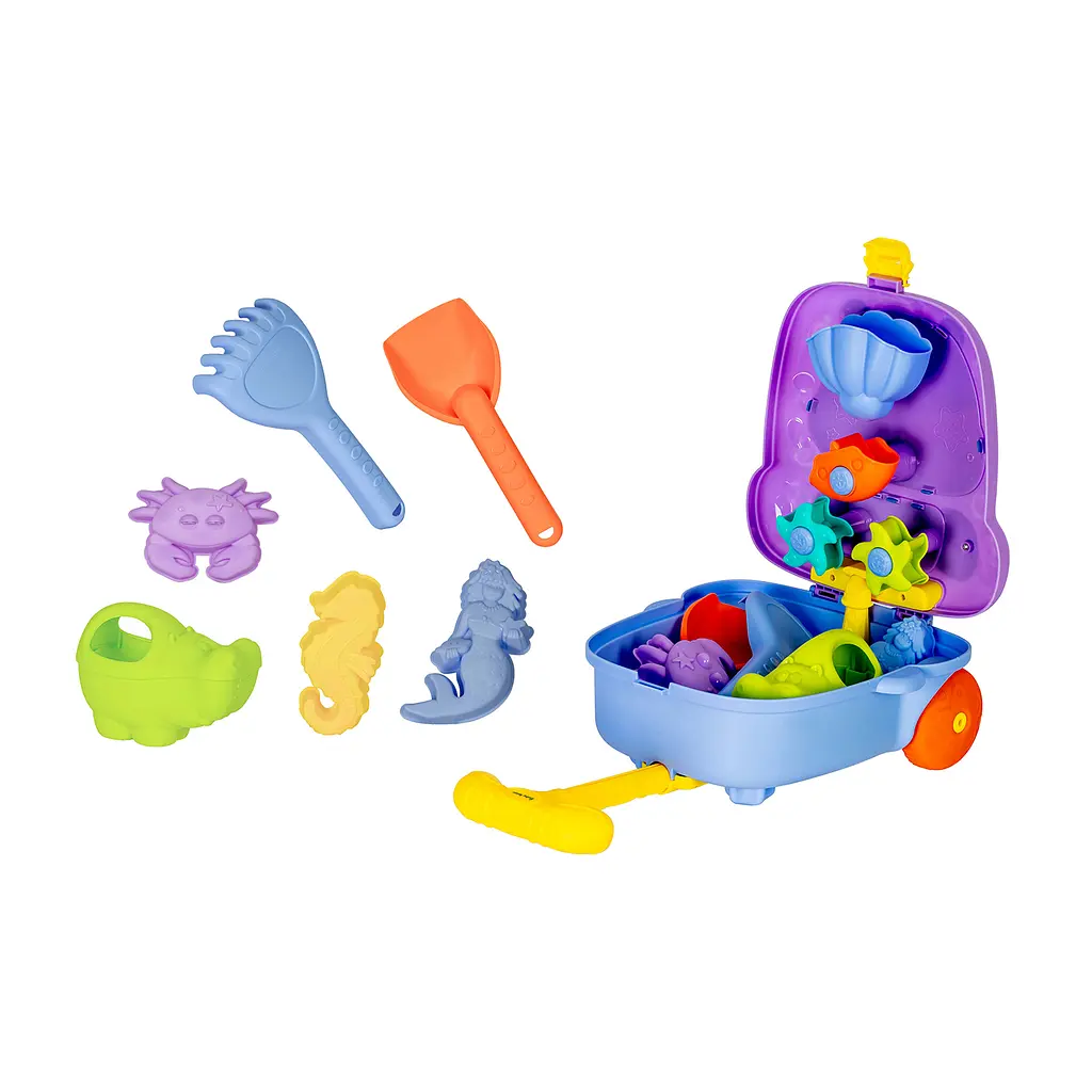 Ніжний бузковий колір привертає увагу, а ергономічні ручки інструментів адаптовані для маленьких дитячих долоньок. Виготовлений з безпечного поліпропілену без вмісту BPA, набір є міцним та стійким до ударів. Після гри інструменти легко миються, що дозволяє підтримувати їх у належному стані для наступних прогулянок.