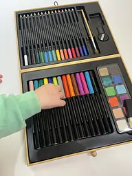 Набір для малювання Djeco Кольорова коробка - це чудово оформлений дерев’яний ящик, який стане ідеальним супутником для маленького художника. Цей набір включає все необхідне для створення яскравих і оригінальних шедеврів, що робить його незамінним у творчому розвитку дитини.