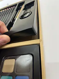 До наповнення зауважень не було, досить якісні, красиві і гарно малюють, фарбами ще не користувались, тому по них нічого сказати не можу. ГОЛОВНИЙ НЕДОЛІК - це замок у вигляді резинки, який настільки не зручний, що дитина 4 роки не може сама відкрити, дорослому теж не зручно користуватись. Наступний момент, це форми, в яких розміщені самі предмети, вона зроблена з тонкого пластику і більш чим впевнений що досить швидко поламається, і вже не зможе номально тримати предмети.
