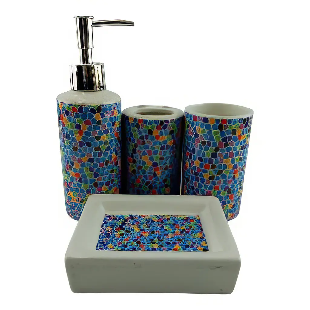 З чарівним набором аксесуарів для ванної кімнати всі предмети будуть на своїх місцях. У керамічний набір входить дозатор для рідкого мила, склянка, органайзер для зубних щіток, мильниця.