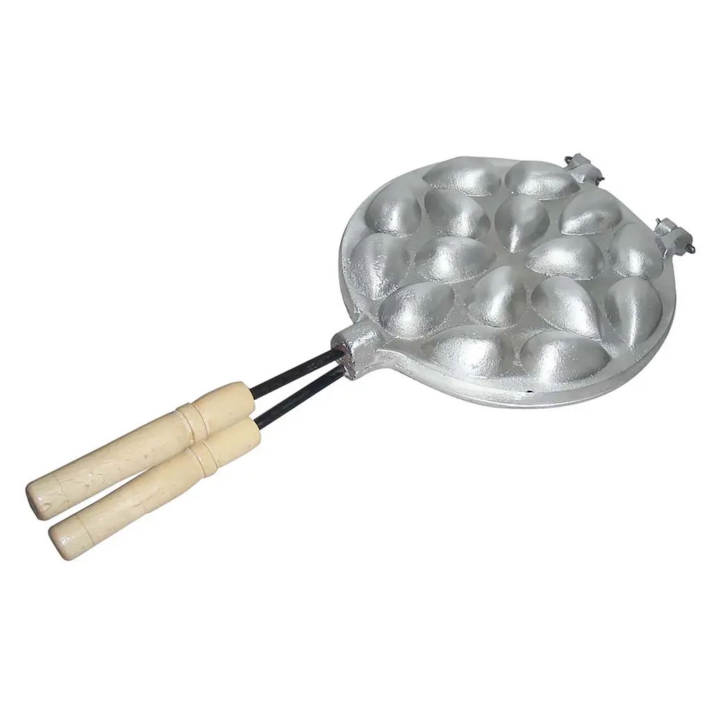 Обидві форми виготовлені зі спеціального харчового алюмінієвого сплаву, який забезпечує швидке та рівномірне нагрівання. Це гарантує якісне пропікання без підгоряння. Міцні ручки зі сталевого прутка з дерев’яними елементами забезпечують зручне захоплення та безпеку під час приготування.