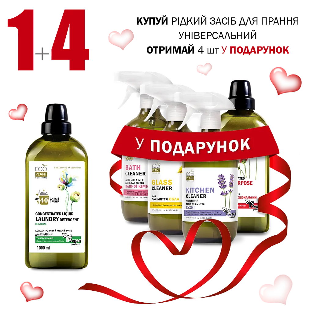Набір EcoPlant (ЕкоПлант) For Home Концентрований рідкий засіб для прання Universal - це екологічний, безпечний та ефективний засіб для прання всіх видів тканин.