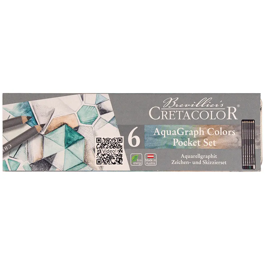Водорозчинні графітні олівці AquaGraph від Cretacolor ідеально підходять для малювання в акварельній техніці, крім того рекомендується для ескізів акварельних замальовок. Ці олівці служитимуть довше завдяки більшому діаметру самого стрижня. Міцна оболонка із натурального дерева захищає стрижень від ударів. Графітовий стрижень при роботі не ламається, не кришиться, грифель легко заточується.
