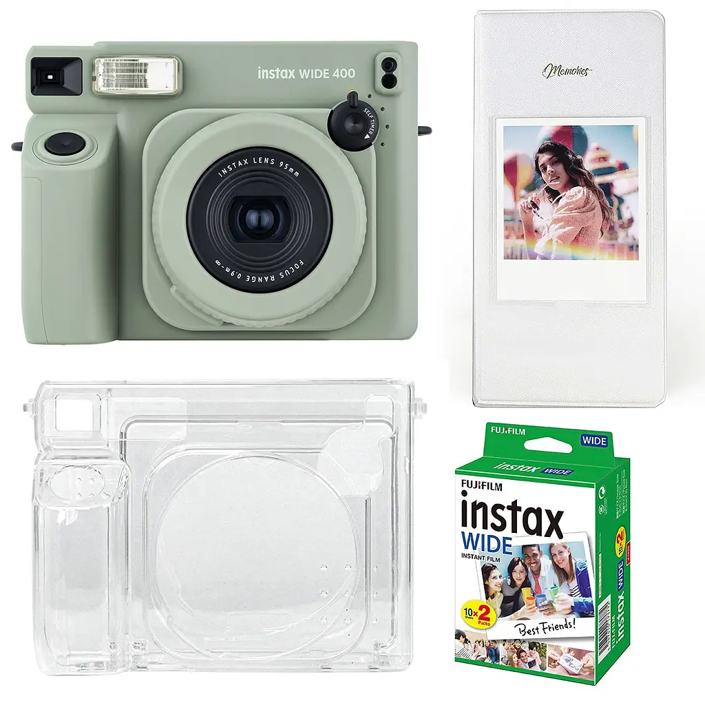 Набір камера Fujifilm Instax Wide 400 Фотопапір 20 шт. Прозорий чохол Фотоальбом на 64 фото білий - це чудове поєднання функціональності, стилю та зручності для всіх, хто любить миттєву фотографію. Камера Fujifilm Instax Wide 400 створює широкоформатні знімки з реалістичною передачею кольорів і високою чіткістю, що робить її ідеальною для зйомки великих компаній, подорожей або святкових подій.