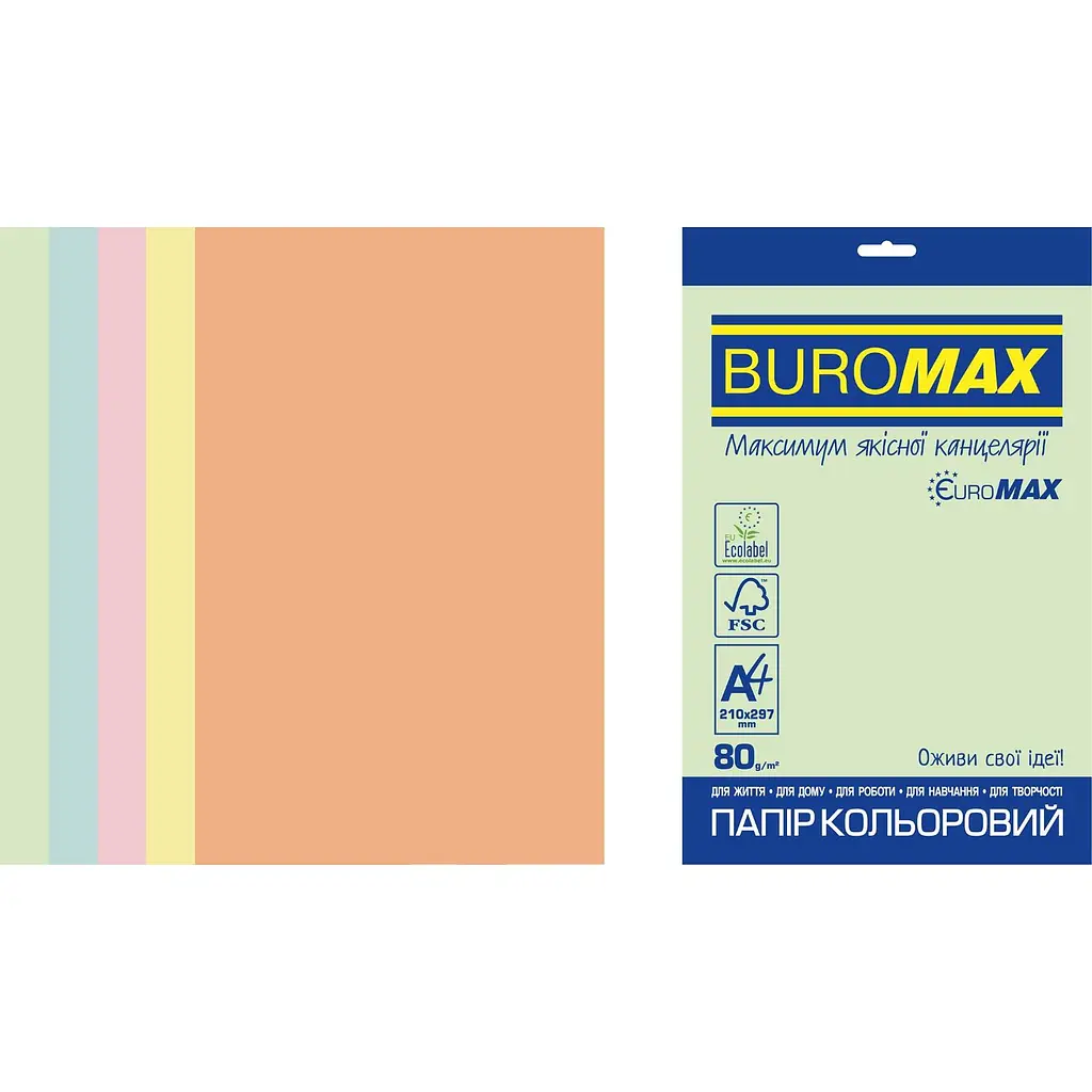 Набір кольорового паперу Buromax Euromax - для життя, для роботи, для навчання, для творчості, для дому.