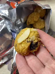 Кокосово-мигдалеве: борошно кокосове, стружка кокосова, борошно рисове, олія кокосова, натуральний мед, журавлина сушена, мигдаль пластівці, сироватка суха молочна, яйця курячі (білки), крохмаль кукурудзяний, сіль морська, сода харчова.