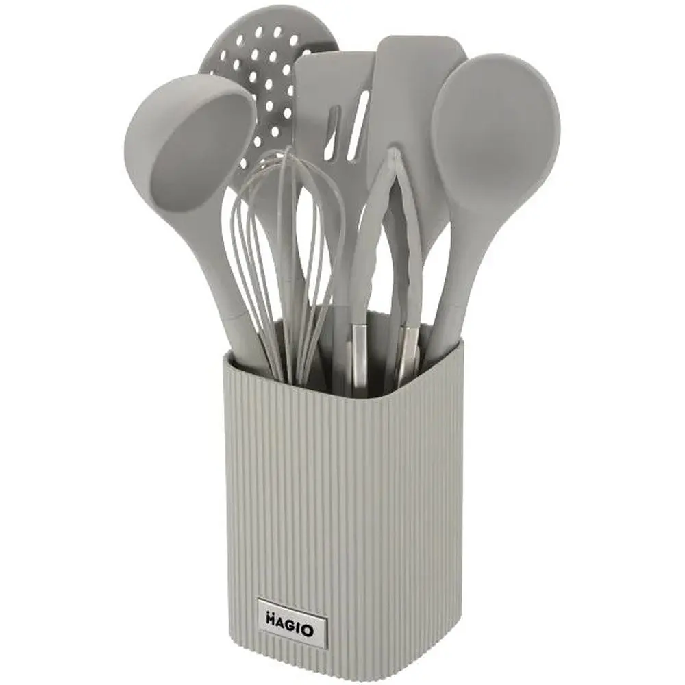 Набір кухонного приладдя Magio - це функціональний комплект, що складається з 8 предметів (7 інструментів та підставка), призначений для комфортного приготування їжі. Приладдя виготовлено з пластику та силікону, який є безпечним для антипригарного посуду і мають високу термостійкість.