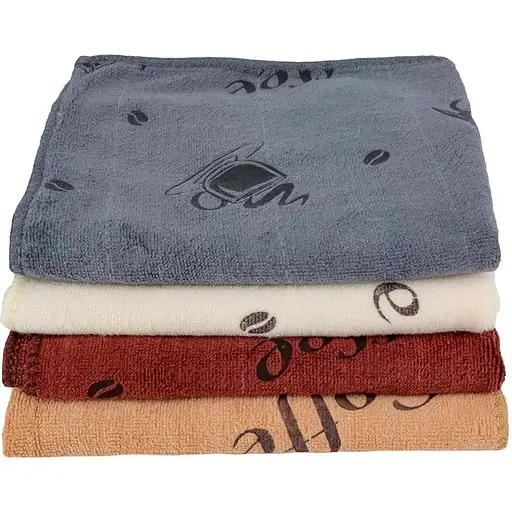 Набір кухонних серветок HomeBrand складається з чотирьох серветок з мікрофібри різних відтінків.