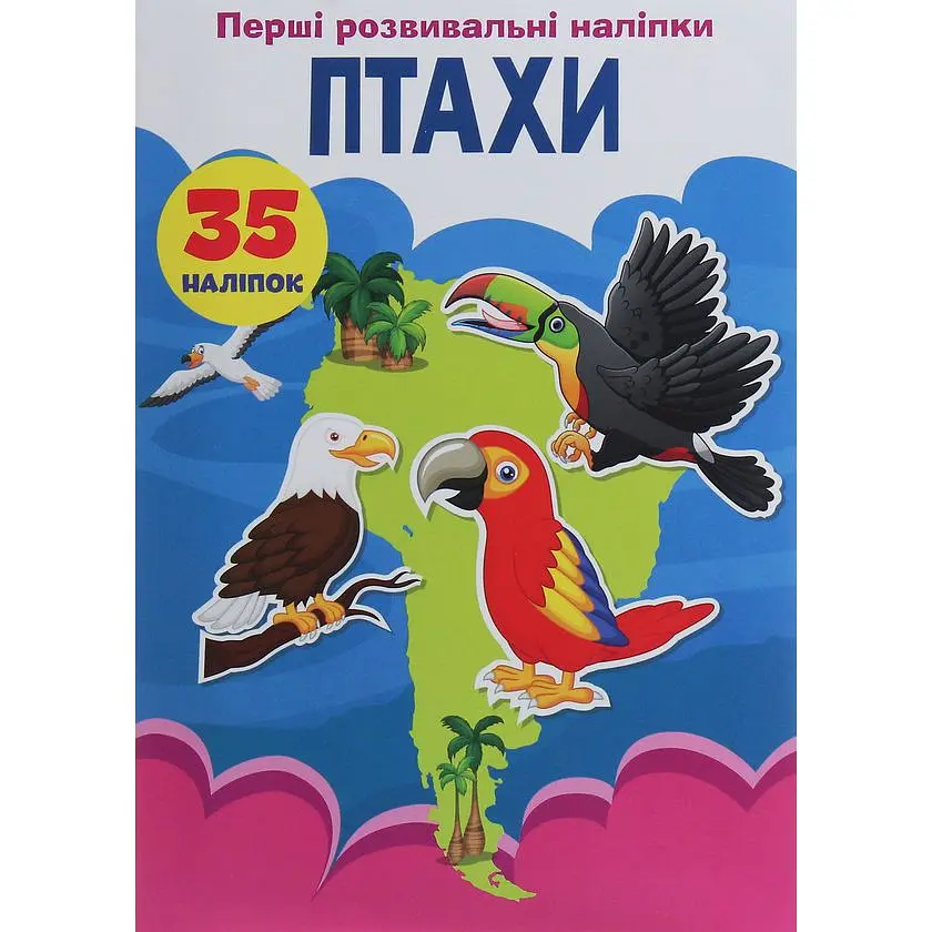 Яскраві пташки, цікаво дізнаватися їхні назви. Клеяться добре, не відриваються. Тільки малувато наліпок, хотілося б більше. За таку ціну — чудова розвага для дітей!
