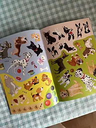 Класна книжечка, щоб розважити малюка. Малюнки яскраві, наліпки з різними песиками, можна ще і породи вивчати поки гратись. Поки що беру ці книжки про запас, коштують копійки, але дуже гарна якість друку та паперу.