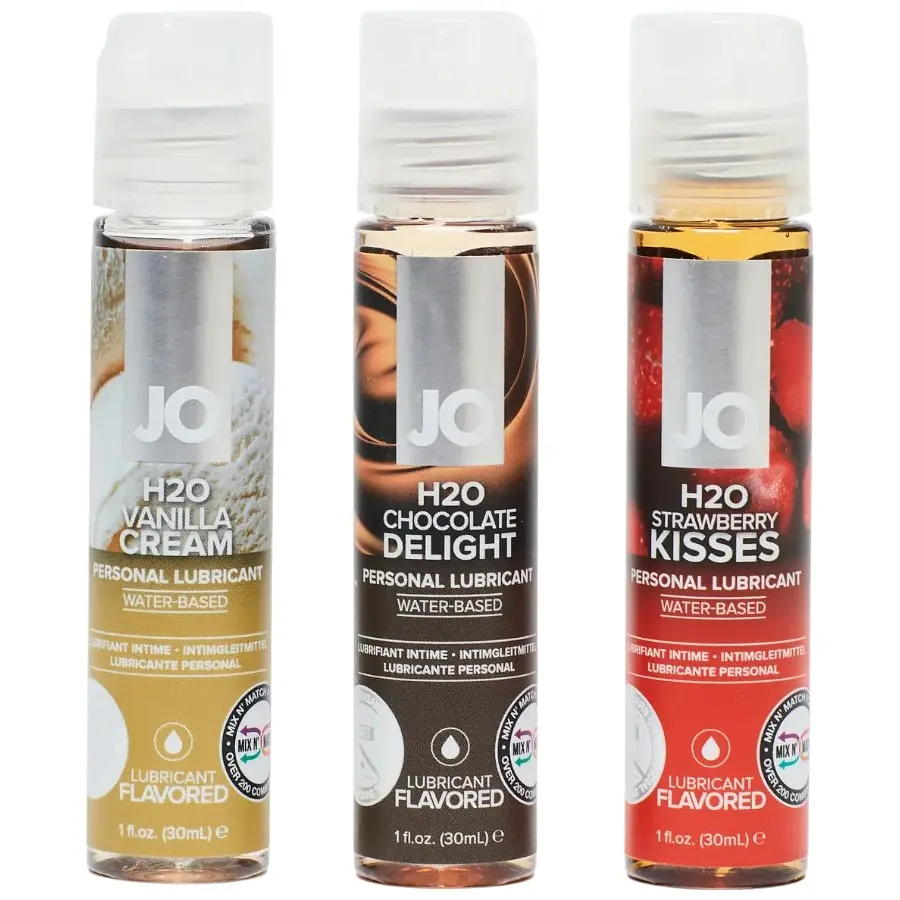 Набір оральних змазок JO TriMe Triple Pack Neapolitan допоможе вам підсолодити оральні розваги і зробити секс ще яскравішим і насиченим.У наборі JO TriMe Triple Pack Neapolitan містяться три оральних змазки, кожна з яких має приємний смак і аромат. Вони є смачними і абсолютно безпечними для здоров'я, оскільки виготовлені з натуральних інгредієнтів високої якості. Змазки не тільки зроблять сковзнувшу поверхню гладшою, але й подарують додаткову бажаність в оральних ласках, оскільки з ними геніталії партнера отримають солодкий смак. Тому такі сексуальні практики, як мінет і кунілінгус, стануть удвічі яскравішими!У наборі JO TriMe Triple Pack Neapolitan містяться: - Оральний змазка JO H2O Vanilla Cream (30 мл) - змазка з ніжним смаком і ароматом ванілі; - Оральний змазка JO H2O Chocolate Delight (30 мл) - змазка з шоколадним смаком і ароматом; - Оральний змазка JO H2O Strawberry Kisses (30 мл) - змазка, яка пахне як спіла полуниця і має такий же смак.