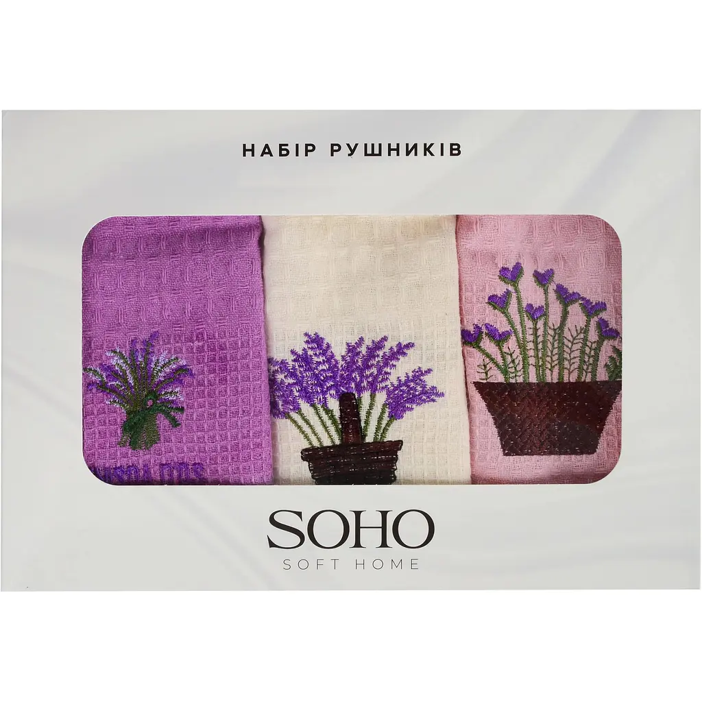 Набір рушників Soho Lavender collection виготовлений зі 100% бавовни. Вони довго зберігають привабливий зовнішній вигляд, стануть стильним атрибутом та незамінними помічниками на вашій кухні.