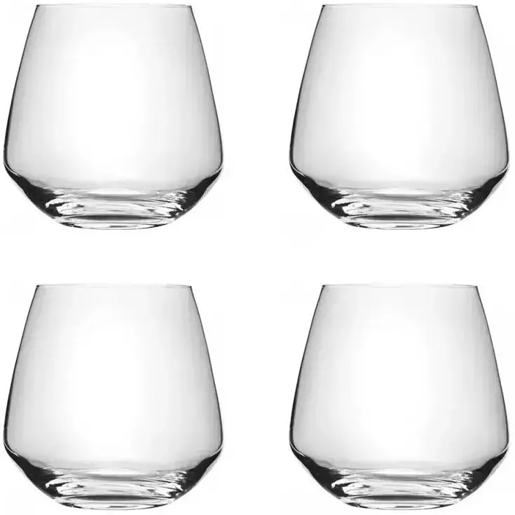 Набір склянок для віскі з чотирьох склянок, виготовлених з високоякісного скла. Такі склянки називаються рокс. У них зазвичай подають віскі, ром, коктейлі на їх основі або безалкогольні напої з льодом. Вироби зі скла без позолоченої або платинової обробки можна мити в посудомийній машині, на делікатному режимі. Не варто використовувати порошкові мийні засоби або мочалки з грубого матеріалу, це може залишити подряпини на склі.