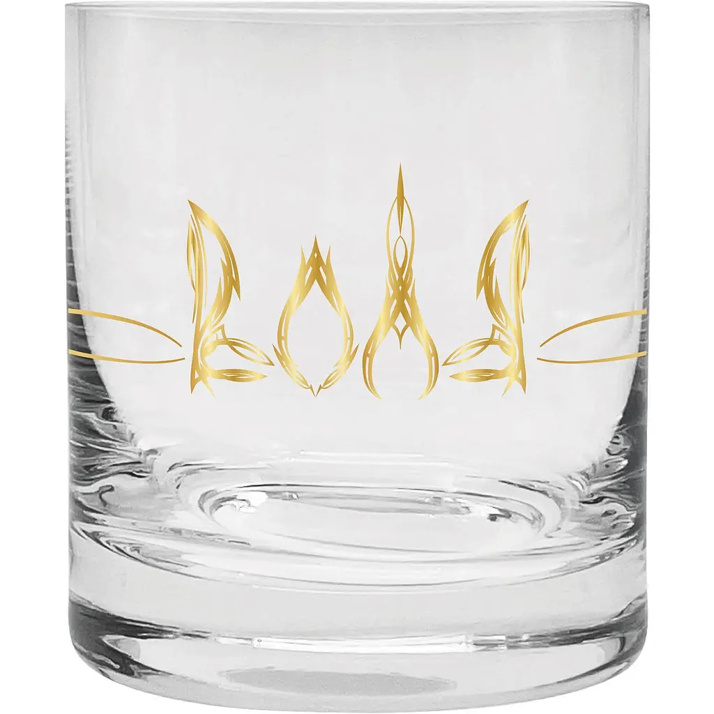 Набір склянок з невисокими стінками та потовщеним дном, призначені для міцних алкогольних напоїв, у тому числі віскі. Декор створений на основі українського тризуба, який має давню історію, але водночас є сучасним символом країни.
