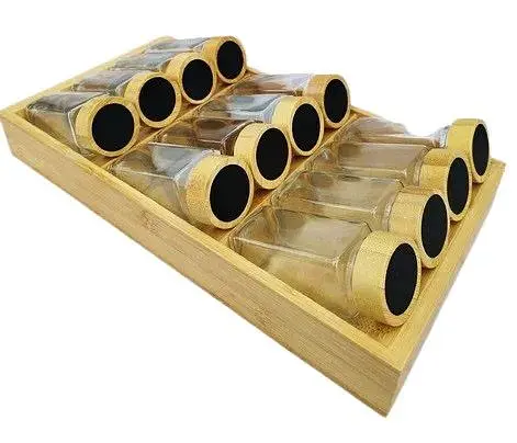 Дерев'яна підставка додає стилю та зручності, допомагаючи організувати простір на кухні. Кришки баночок надійно закриваються, що допомагає зберігати свіжість та аромат спецій протягом тривалого часу.