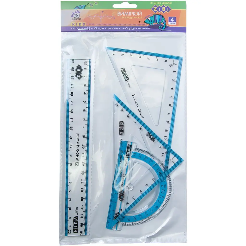 Набір ZiBi Kids Line: лінійка 20 см, 2 косинці, транспортир з блакитною смужкою (ZB.5680-14) - фото 1