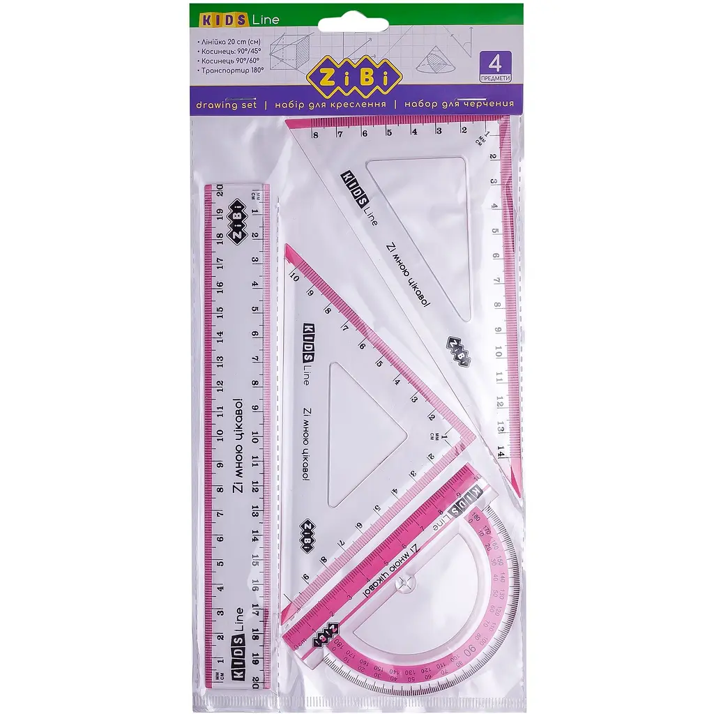 Набір для креслення від ZiBi Kids Line із прозорого пластику з кольоровими смужками.