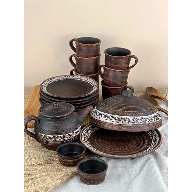 Цей набір створений для справжніх цінителів домашнього затишку і традиційних смаків. Завдяки техніці ангобного покриття кераміка набуває особливої глибини кольору і природної текстури. Ідеальний вибір для подачі млинців, чаювання і сімейних посиденьок.