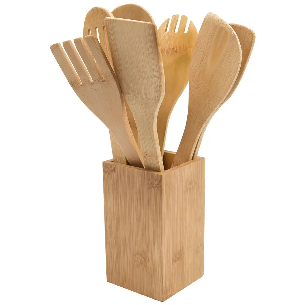 Бамбуковий набір кухонного приладдя на 9 предметів - це ідеальне поєднання практичності, довговічності та сучасного дизайну. Він стане чудовим доповненням вашої кухні, підкреслюючи ваші цінності: турботу про довкілля та прагнення комфорту.