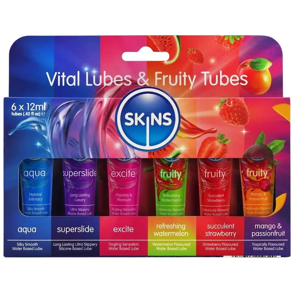 Набір лубрикантів Skins 12ml x 6 шт. - ідеальний вибір для експериментів Шукаєте різноманітність в інтимних відчуттях Skins 12ml x 6 шт. - це набір з шести високоякісних лубрикантів, які забезпечують ідеальне ковзання і комфорт. Вибирайте відповідний вашому настрою! Чому варто вибрати набір Skins 6 різних видів в одному наборі Шовковиста текстура - без липкості Формула на водній основі - легко змивається Безпечний для використання з презервативами та іграшками Зручний формат - для подорожей та експериментів Ідеальний набір для нових відчуттів Набір Skins 12 мл x 6 шт. - це універсальний вибір для тих, хто хоче спробувати щось нове і знайти свій ідеальний лубрикант. Кожна упаковка містить шовковистий лубрикант на водній основі, який підходить для будь-якого типу інтимної близькості. Готові до нових вражень Характеристики: Основа: водна Об'єм: 6 шт. по 12 мл. Формула: зволожуюча, тривале ковзання Безпека: підходить для чутливої шкіри Сумісність: презервативи, секс-іграшки.