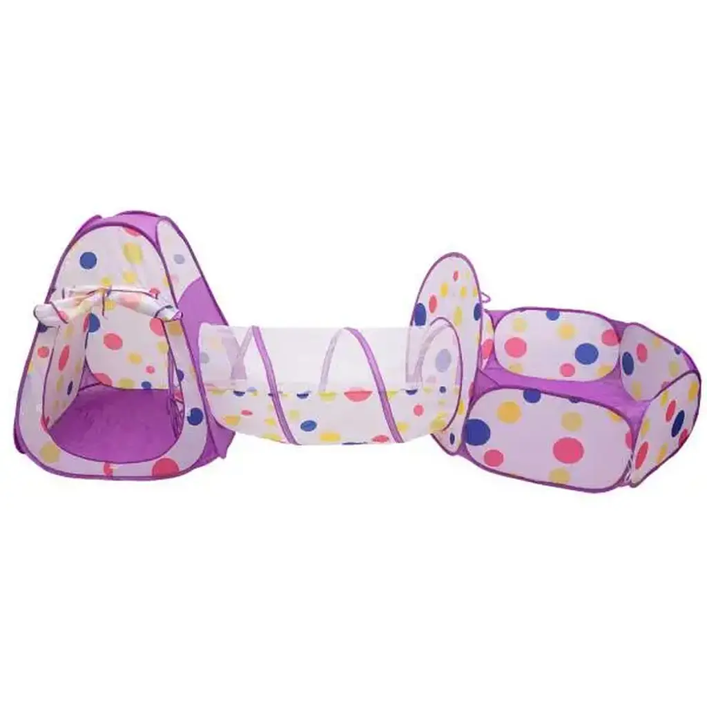 Ігровий намет з басейном для кульок та тунелем – ідеальний вибір для активних малюків, які тільки повзають або роблять перші кроки. Басейн можна використовувати як зручний манеж, а тунель стане веселим способом розвивати координацію та фізичні навички дитини.