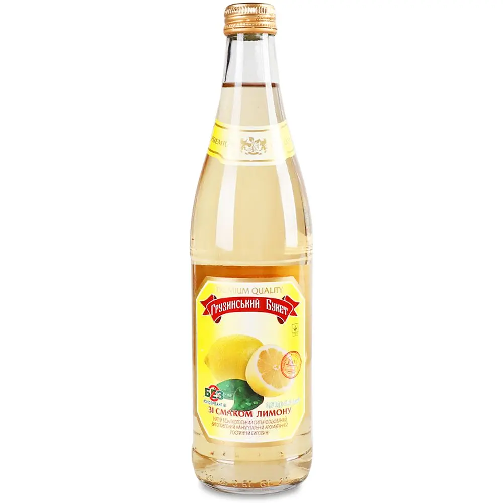 Напій Грузинський букет зі смаком лимону - сильногазований безалкогольний класичний лимонад. Виготовлений на основі ексклюзивних і виключно натуральних настоянок: фруктових, ягідних, трав'яних у поєднанні з чистою артезіанською водою.