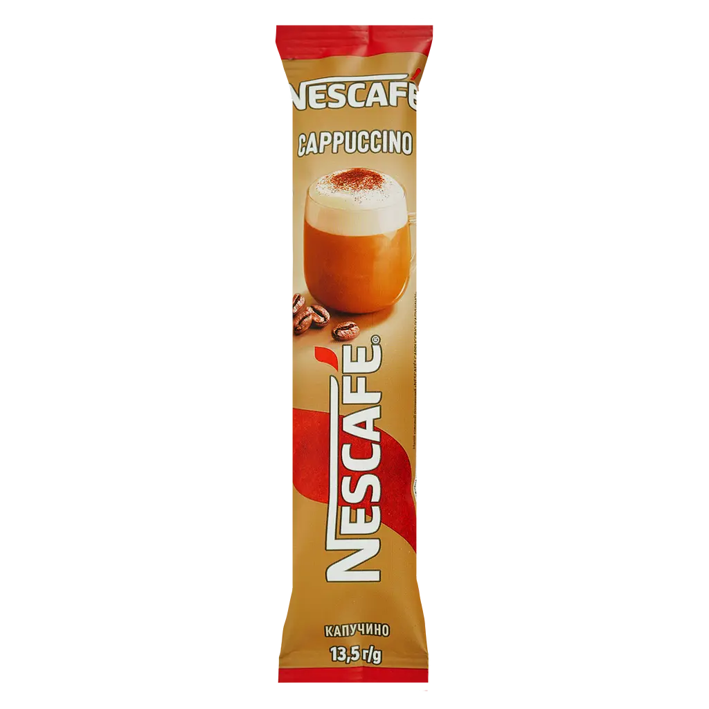Напій кавовий Nescafe Cappuccino у форматі зручного стіка - це ідеальний спосіб насолодитися улюбленим капучино в будь-який момент. Завдяки багатому кавовому смаку, апетитному аромату та розкішній густій пінці напій дарує враження, ніби ви щойно завітали до кав’ярні. Легкий у приготуванні: просто додайте гарячу воду, перемішайте - і насолоджуйтеся.