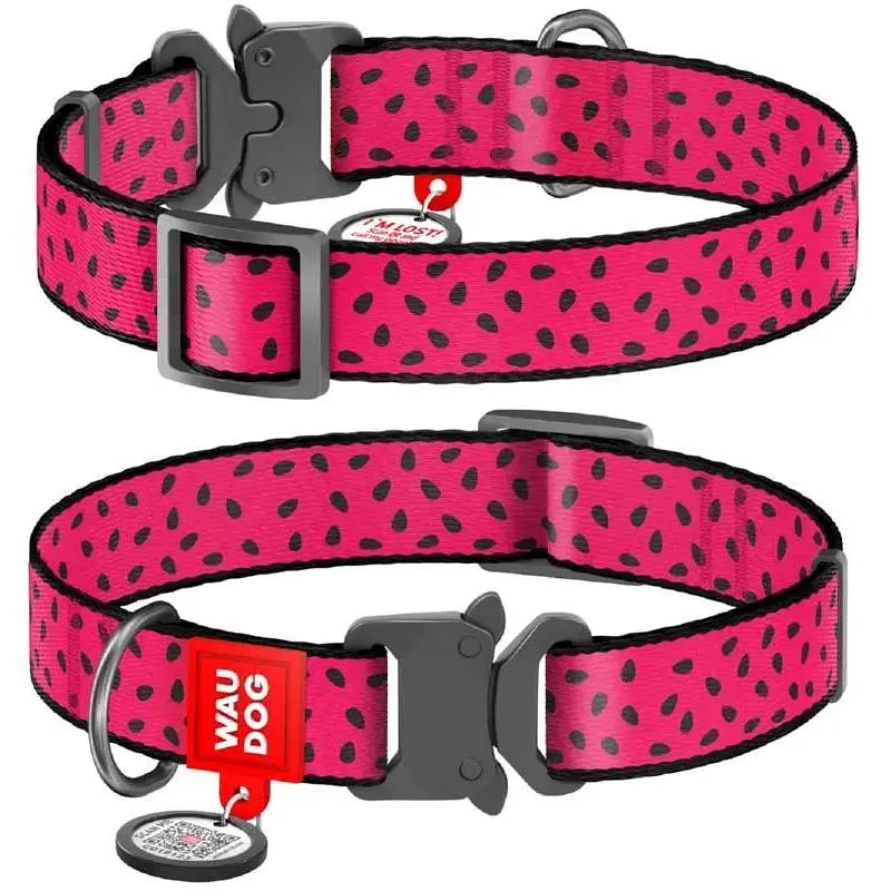 Нашийник для собак Waudog Nylon нейлоновий c QR паспортом, малюнок Кавун, металева пряжка-фастекс, L, Ш 25 мм, Дов 31-49 см - фото 1