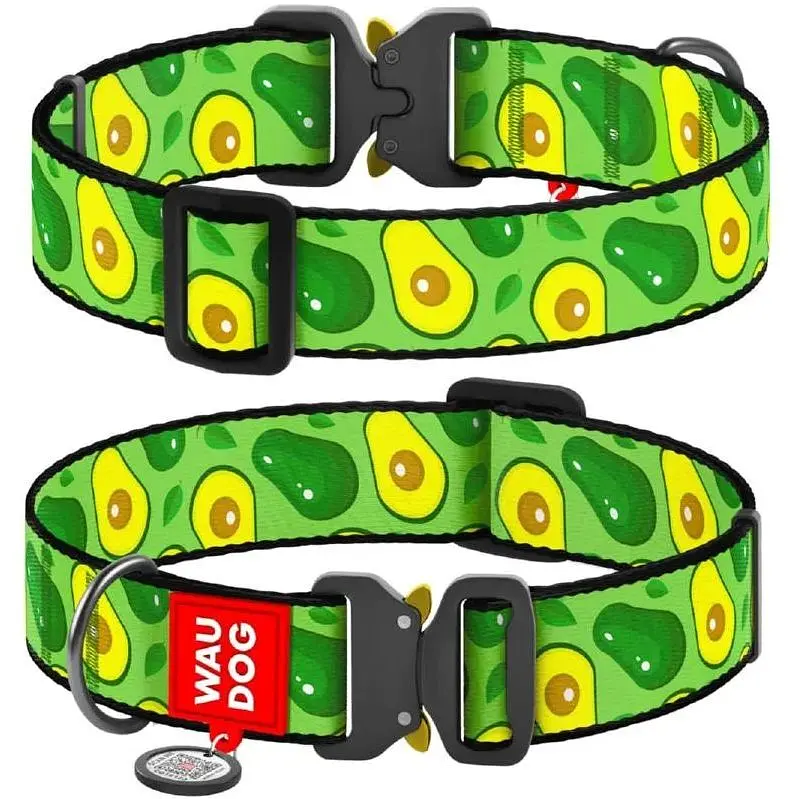 Нашийник для собак Waudog Nylon нейлоновий з QR паспортом малюнок Авокадо пряжка Розмір XXL - фото 1