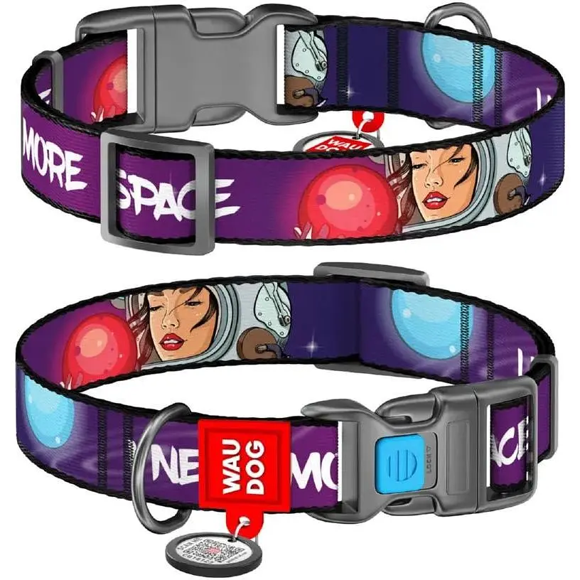 Нашийник для собак Waudog Nylon нейлоновий з QR-паспортом малюнок Більше космосу Розмір L - фото 1