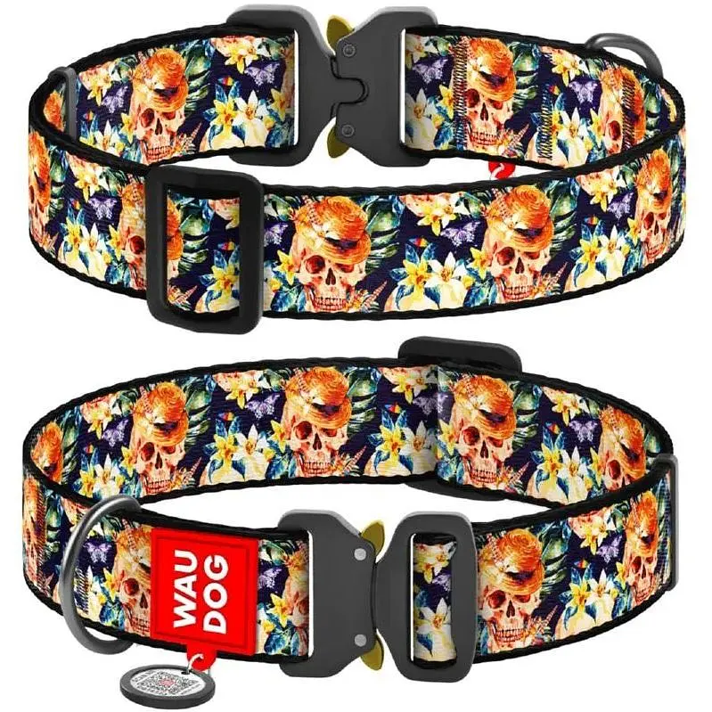 • Нашийник для собак Waudog Nylon нейлоновий з QR паспортом малюнок Гламурні черепи пряжк Розмір XXL - мініатюра 1