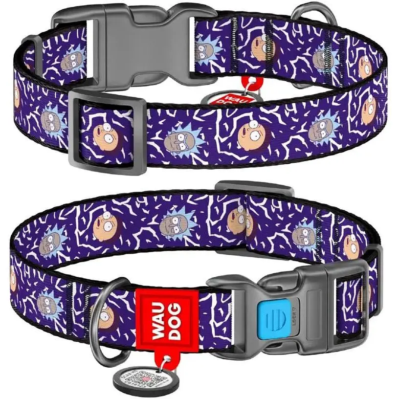 • Нашийник для собак Waudog Nylon нейлоновий з QR паспортом малюнок Рік та Морті 2 Розмір XL - мініатюра 1