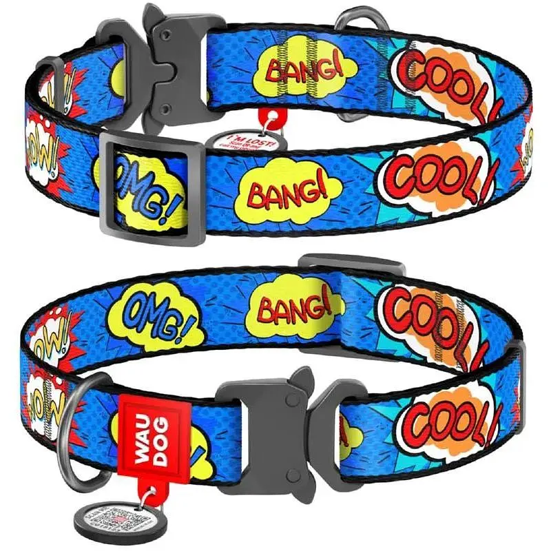 • Нашийник для собак Waudog Nylon нейлоновий c QR паспортом, малюнок ВАУ, металева пряжка-фастекс, L, Ш 25 мм, Дов 31-49 см - мініатюра 1