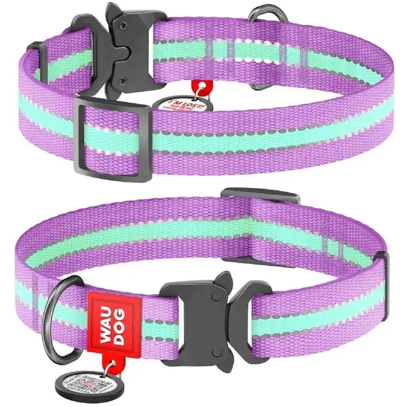 Нашийник для собак Waudog Nylon нейлоновий c QR паспортом, світиться/світловідбивний, металева пряжка-фастекс, L, Ш 25 мм, Дов 31-49 см (4823089321295)
