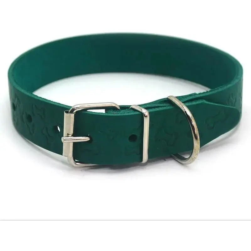Нашийник для собак шкіряний тиснений ОТ Кісточка м'ятний. Приклад розміру: 1,4 (ширина) / 23 (довжина від пряжки до першої дірочки) - 28 (довжина від пряжки до останньої дірочки).;Розміри в см: - 1,4/23-28; - 1,6/23-31; - 1,8/28-36; - 2,0/33-41; - 2,5/36-46; - 3,0/41-51.