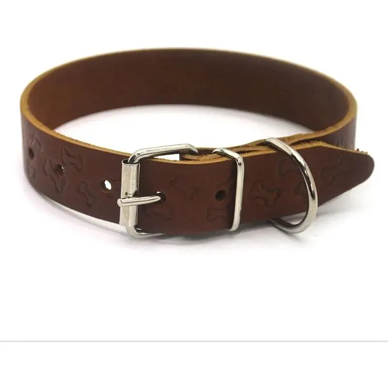 Нашийник для собак Zoo-hunt ОТ Кісточка шкіряний тиснений рудий 1,4/23-28 см