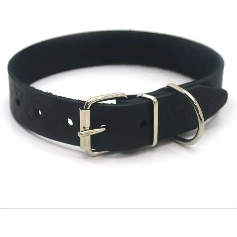 Нашийник для собак шкіряний тиснений ОТ Кісточка чорний. Приклад розміру: 1,4 (ширина) / 23 (довжина від пряжки до першої дірки) - 28 (довжина від пряжки до останньої дірки).;Розміри в см: - 1,4/23-28. - 1,6/23-31. - 1,8/28-36. - 2,0/33-41. - 2,5/36-46. - 3,0/41-51.