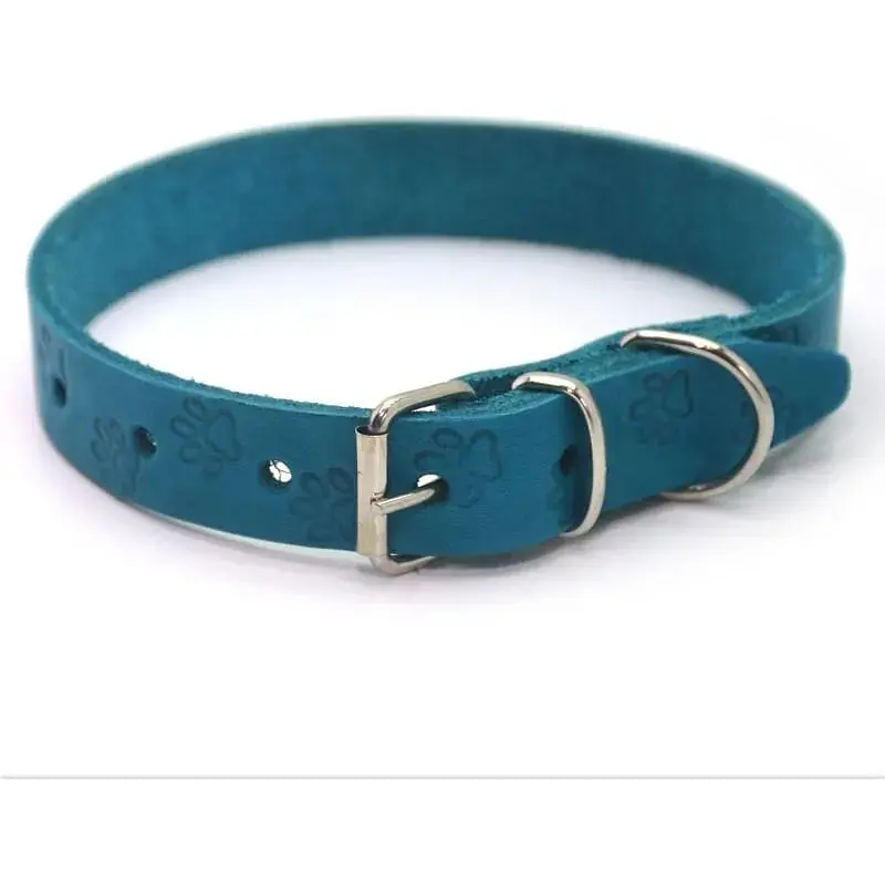 Нашийник для собак Zoo-hunt ОТ Лапка шкіряний тиснений бірюзовий ВІД Лапка 1,4/23-28 см