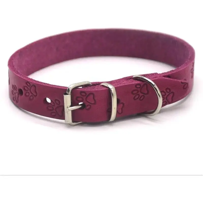 Нашийник для собак Zoo-hunt ОТ Лапка шкіряний тиснений рожевий 2,5/36-46 см
