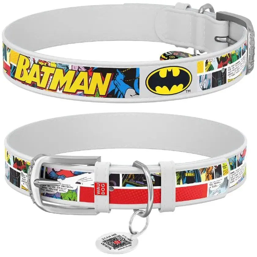 Нашийник для собак Waudog Design шкіряний з QR паспортом, малюнок Бетмен1, XL, Ш 35 мм, Дов 44-58 см - фото 1