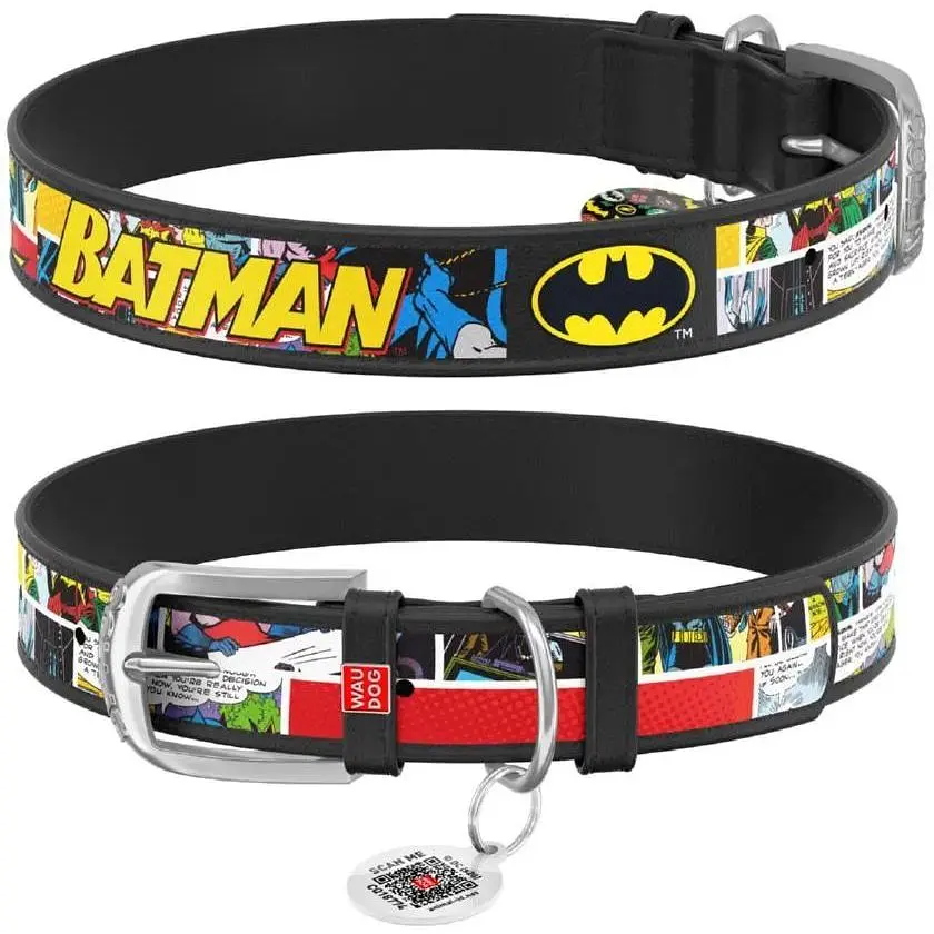 Серія Waudog Design доповнюється нашийниками з ліцензійним зображенням героїв фантастичного всесвіту DC Comics. Тепер культова символіка та популярні супергерої красуватимуться на шкіряній амуніції Waudog Design. Завдяки яскравим і привабливим візерункам ці вироби просто не зможуть залишитися непоміченими. Довжина нашийника підбирається виходячи з обхвату шиї хвостатого друга, який визначають вимірювальною стрічкою. При цьому правильно додавати до отриманого результату від 2 см (для середніх і дрібних порід) до 5 см (для великих), щоб нашийник не натирає і не здавлював шию тварини.