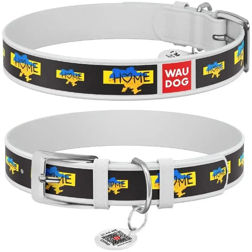 Waudog Design - це преміальна амуніція із натуральної шкіри з патріотичними дизайнами.- Яскраві зносостійкі малюнки- Високоякісна натуральна шкіра- довічна гарантія на всю металеву фурнітуруДовжина нашийника підбирається з обхвату шиї хвостатого друга, який визначають вимірювальною стрічкою. При цьому правильно додавати до отриманого результату від 2 см (для середніх та дрібних порід) до 5 см (для великих), щоб нашийник не натирав і не стискав шию тварини.