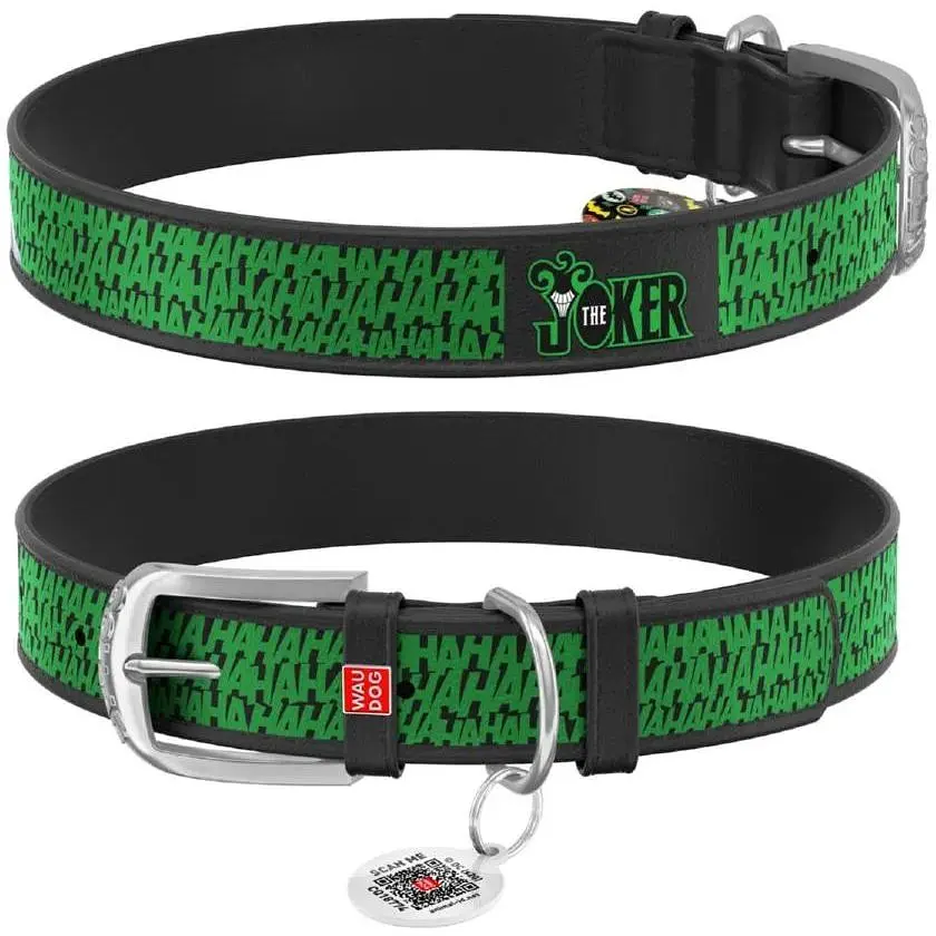 • Нашийник для собак Waudog Design шкіряний з QR паспортом, малюнок Джокер, L, Ш 25 мм, Дов 37-48 см (4823089323589) - мініатюра 1